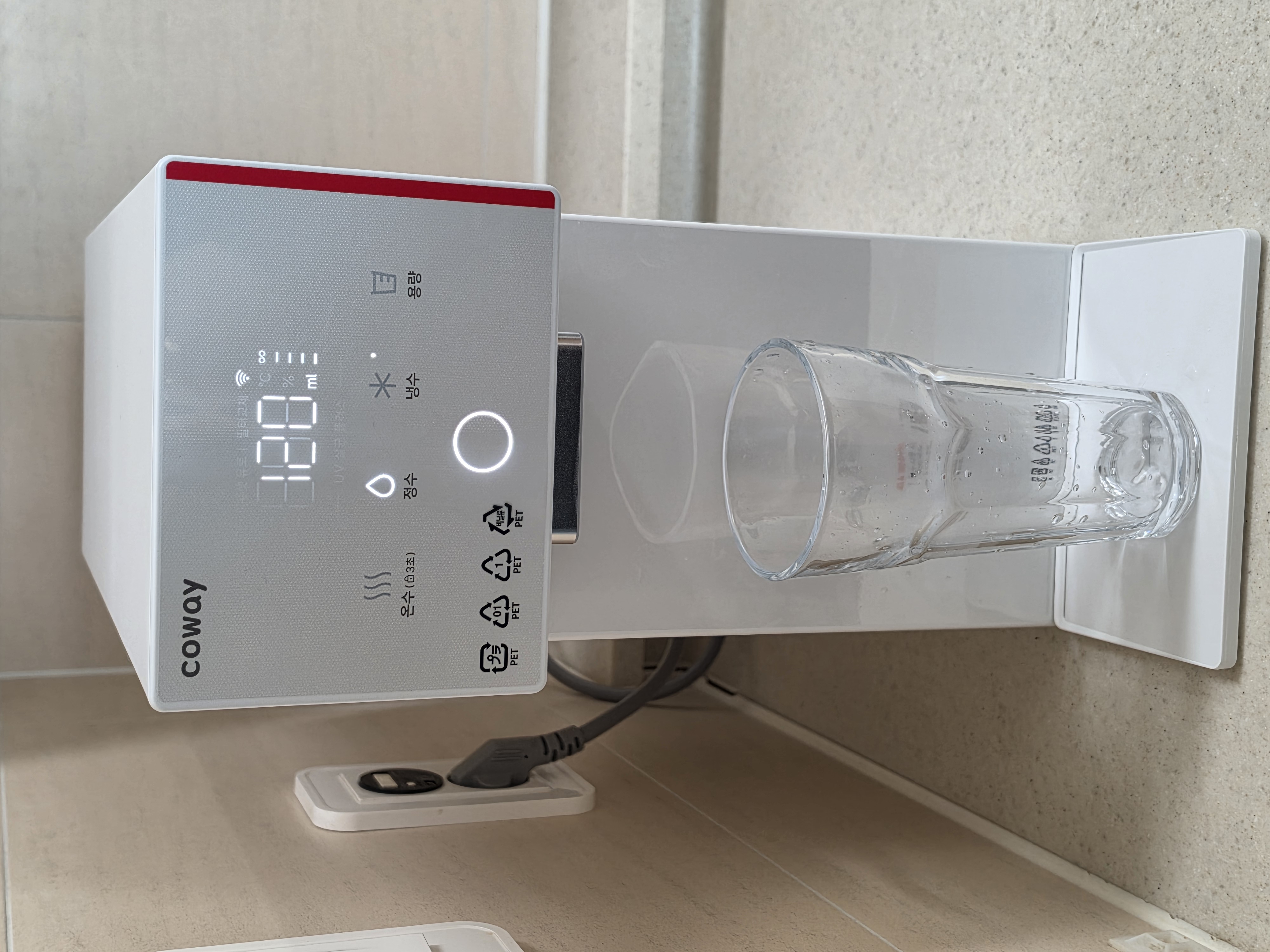 1. 사이즈 : 기대 이상으로 슬림해서 사진에 보이는 것처럼 당초 정수기, 식기세척기만 둘 수 있는 부분이었는데, 컵 트레이도 둘 수 있을 공간이 확보 되었다. 사이즈는 최고다.