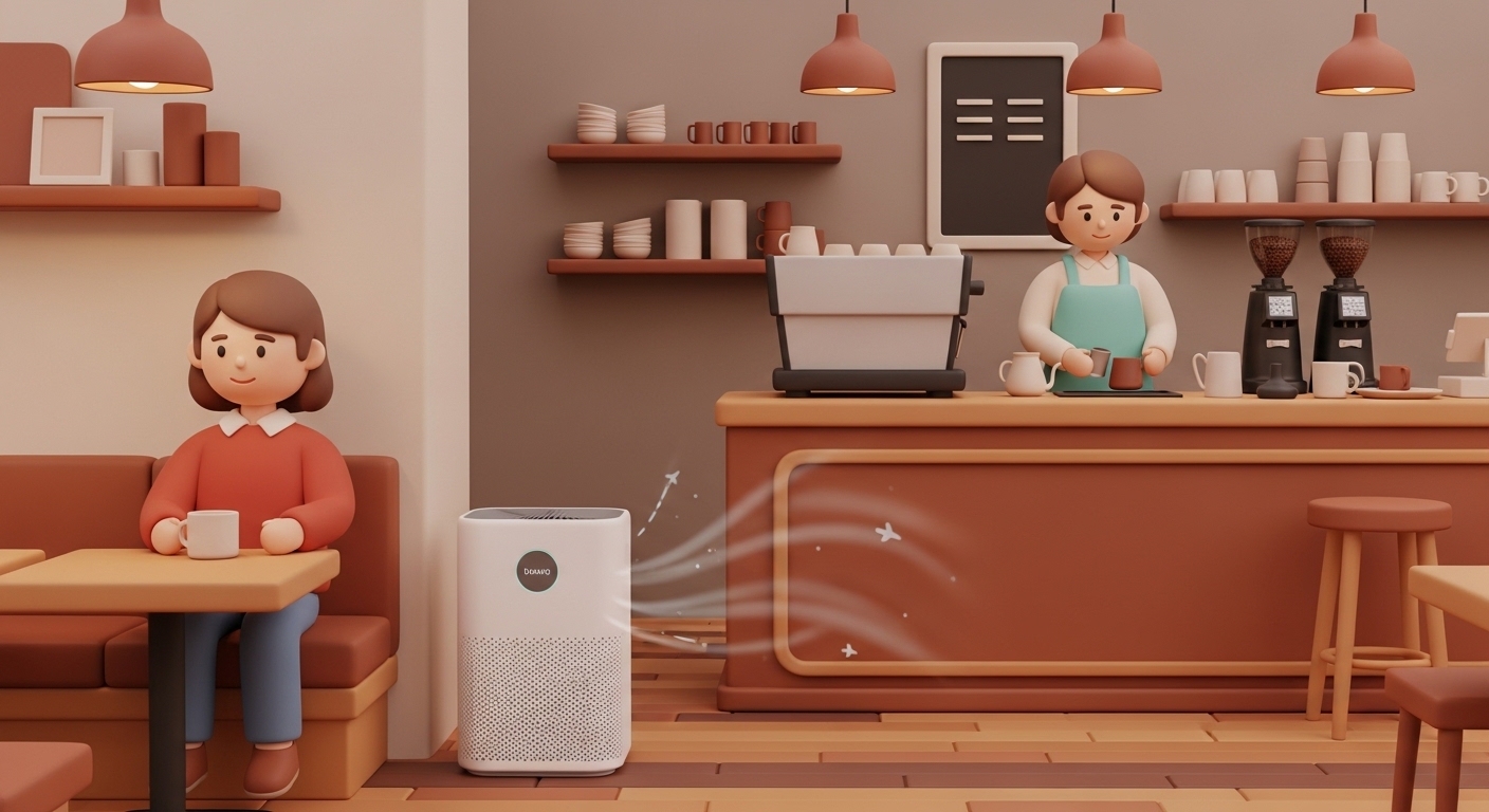 카페에 공기청정기 설치된 이미지 | AI 활용 이미지